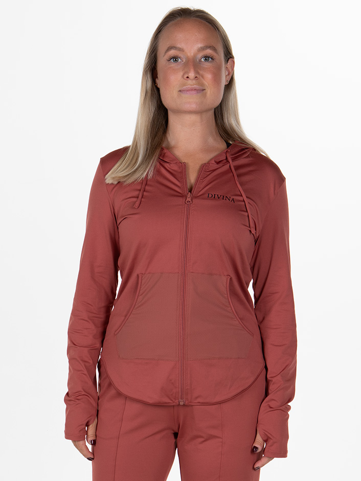 The jacket offers two spacious front pockets that provide plenty of space to store your belongings or warm your hands when the temperature drops. With a comfortable hood and adjustable laces, you can adjust the fit to your needs while protecting yourself from stormier weather. Thumbholes in the sleeves provide extra warmth and comfort while keeping the jacket in place during training. In addition, a flexible zipper in the front makes it easy to put on and take off the jacket, and allows for ventilation when needed.