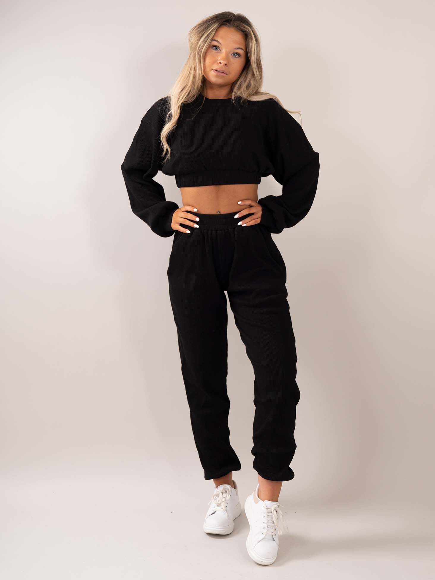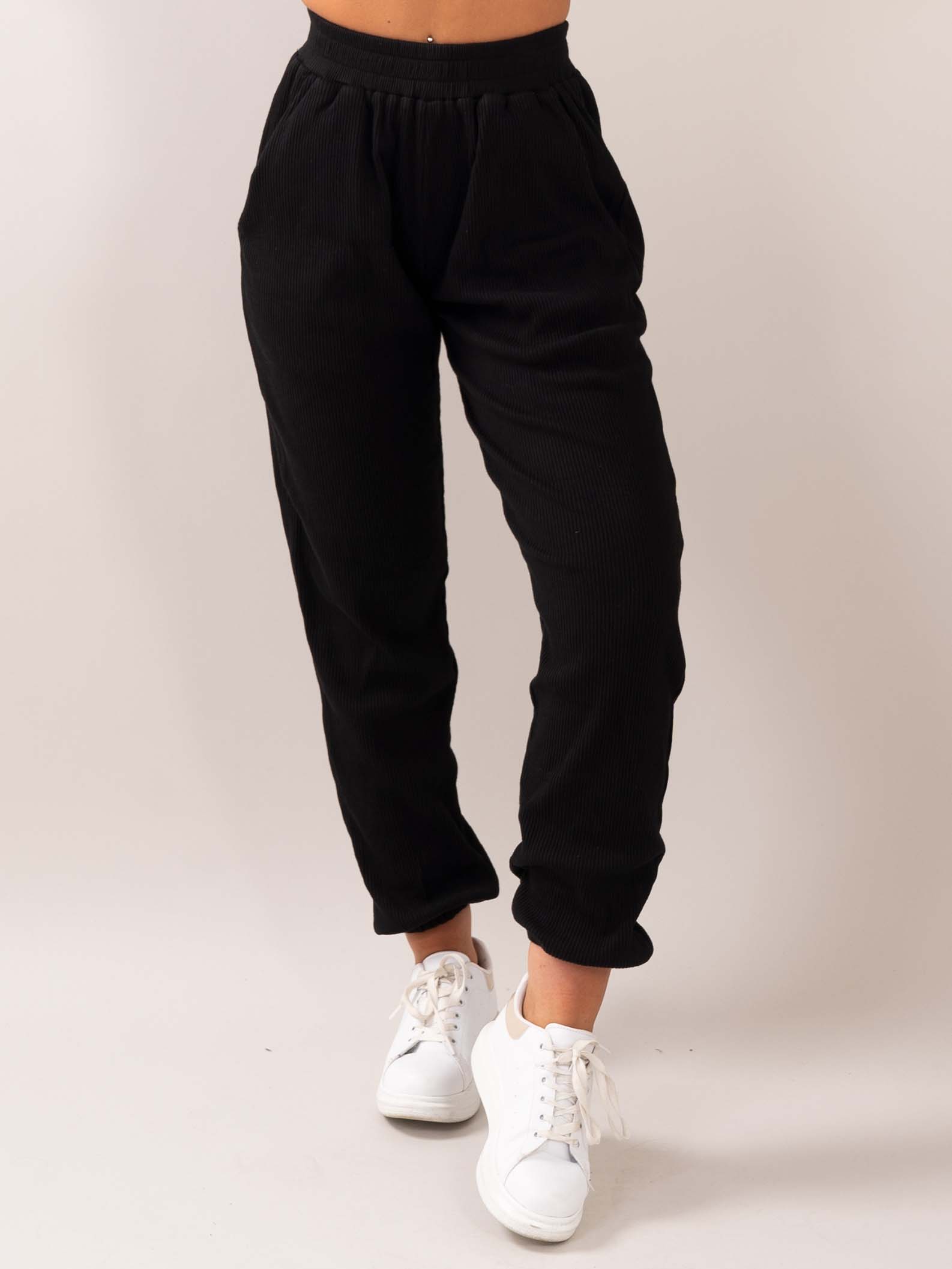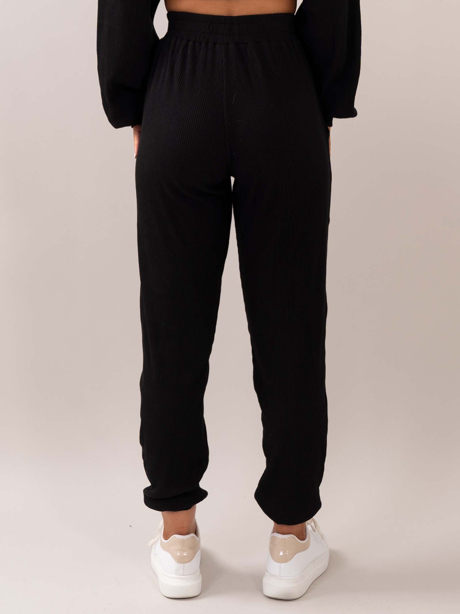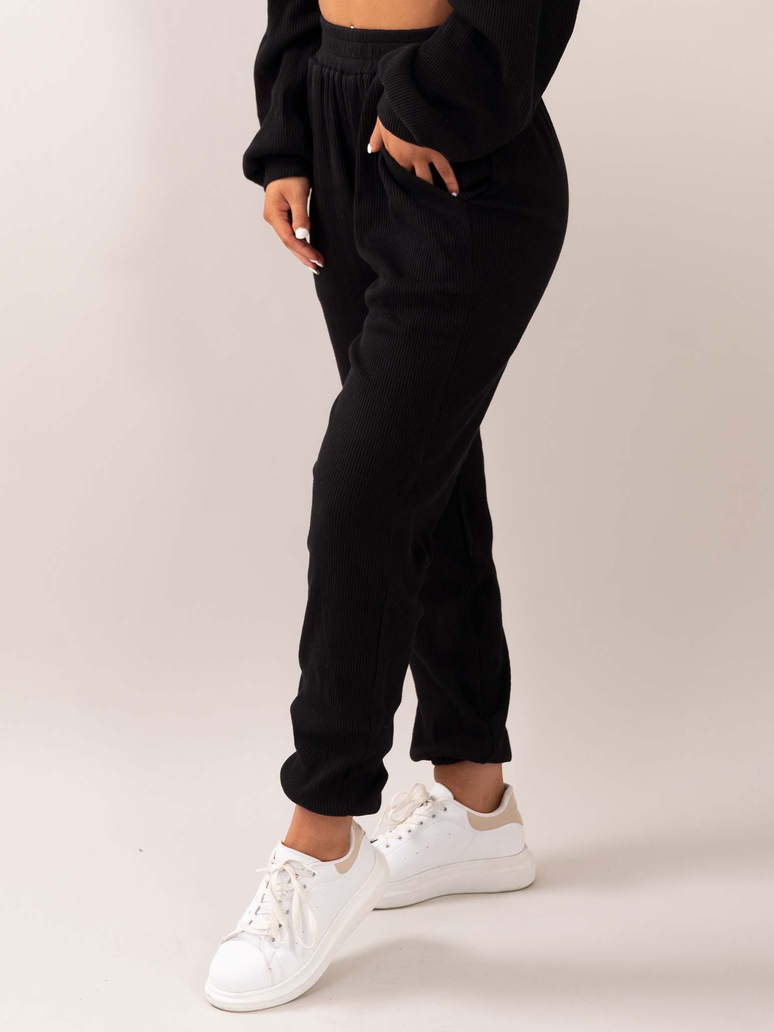 Våra “Air” byxor är ribbade loose-fit mjukisbyxor byxor. Byxorna har två fickor, en på vardera sida.