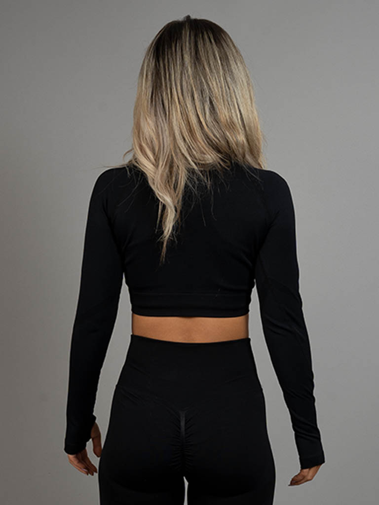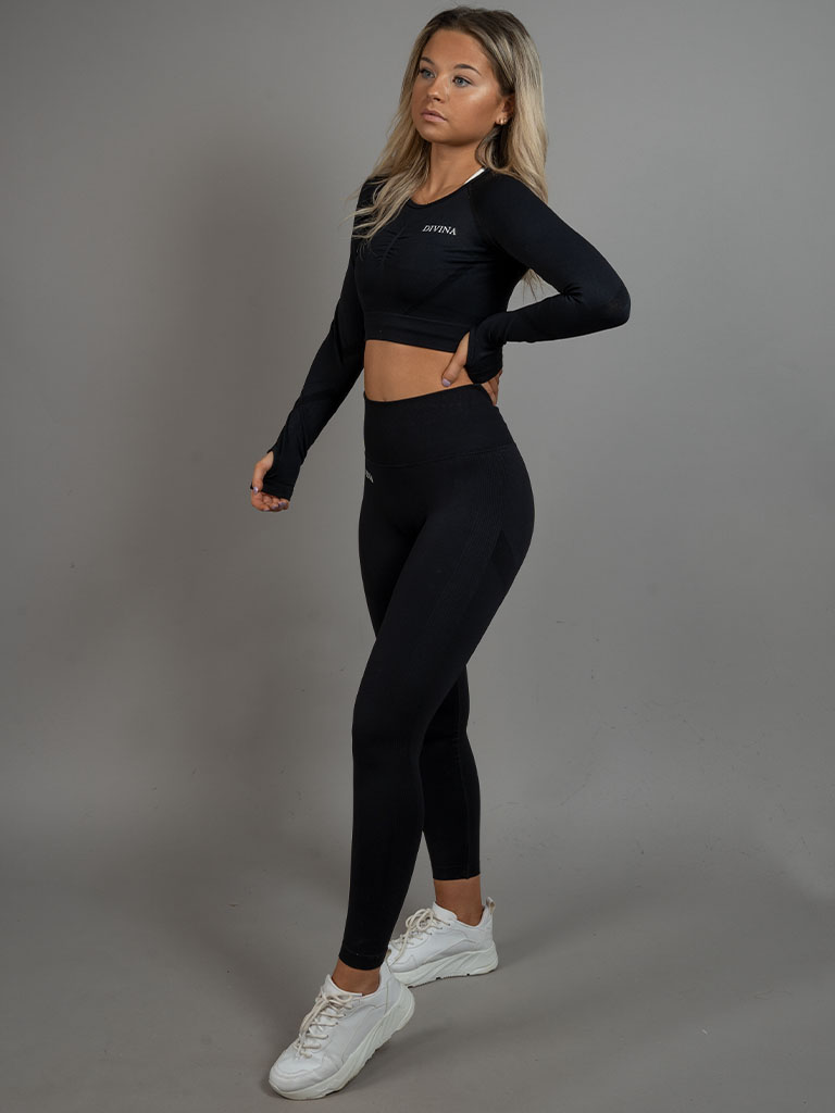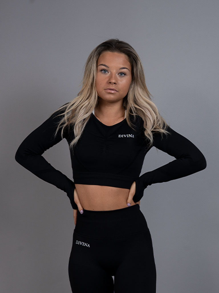 Topen är utsmyckad med en Scrunch söm på framsidan och har hål för tummarna på båda ärmarna. Tack vare seamless designen formar sig crop topen efter din kropp på ett naturligt sätt.