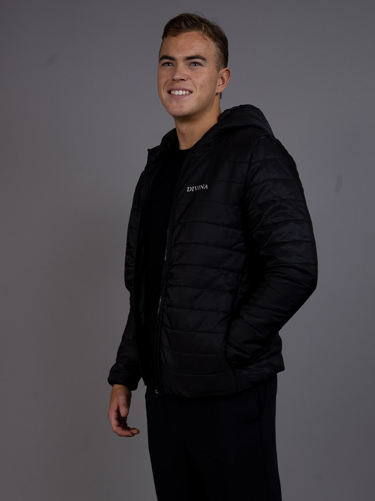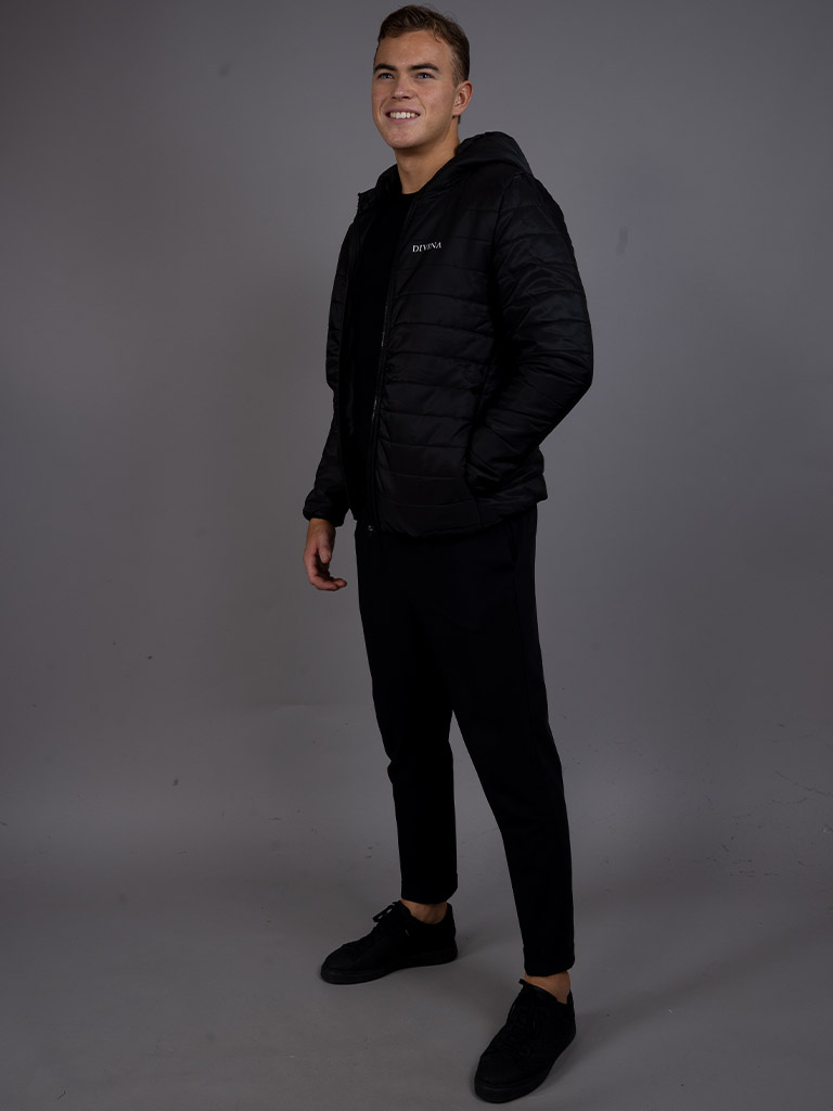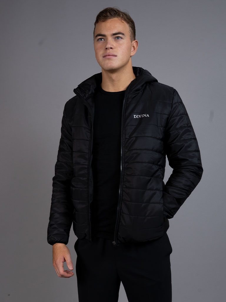 En värmande snygg och stilren dunjacka för herr. Jackan har två fickor utvändigt och fickor invändigt och den har en luva och dragkedje-stängning.