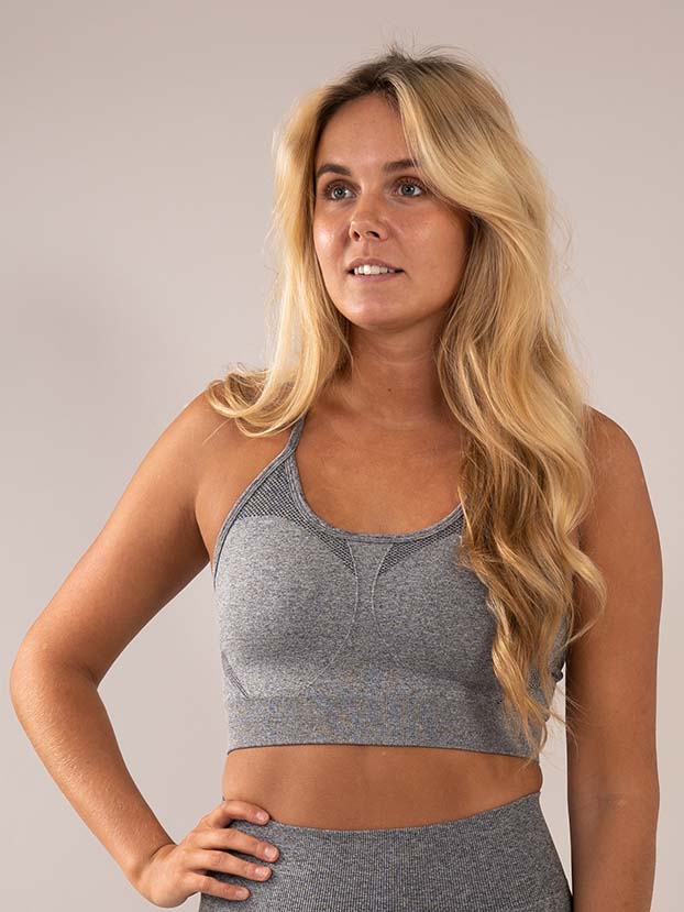 Vår BH “Four” har låg/mellan support, därmed är denna Seamless Sport BH perfekt för aktiviteter som yoga, promenader och lättare pass i gymmet. BH:n har i- och uttagbara kuddar.