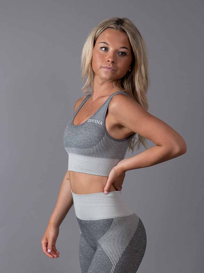 Our “Aptus” set has a flexible material and provides great support during any activity. With a great design and the elastic material you will both look good and be comfortable during your workout. Including removable sports bra padding.